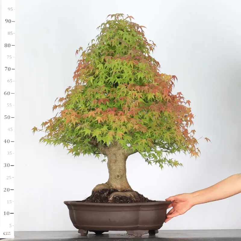This 35-year-old Japanese Maple Palmatum bonsai is a classic “stock” variety, prized for its vigor, resilience, and reliability. Commonly used as a rootstock for more delicate cultivars, it is an ideal choice for beginners and enthusiasts who want a hardy, forgiving bonsai that responds well to shaping and cultivation.