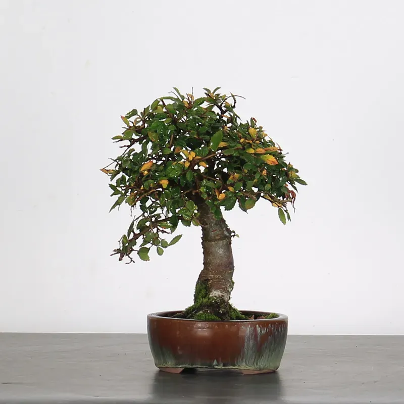 10-year-old Chinese Elm bonsai with deep green leaves and semi-persistent foliage. Compact, easy to grow, and perfect for beginners.