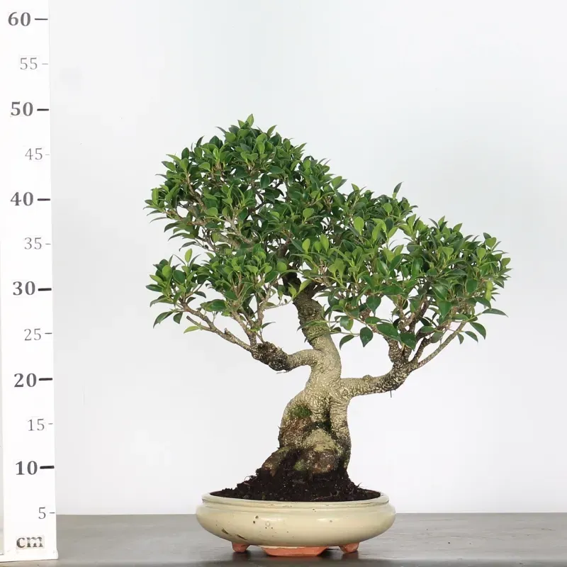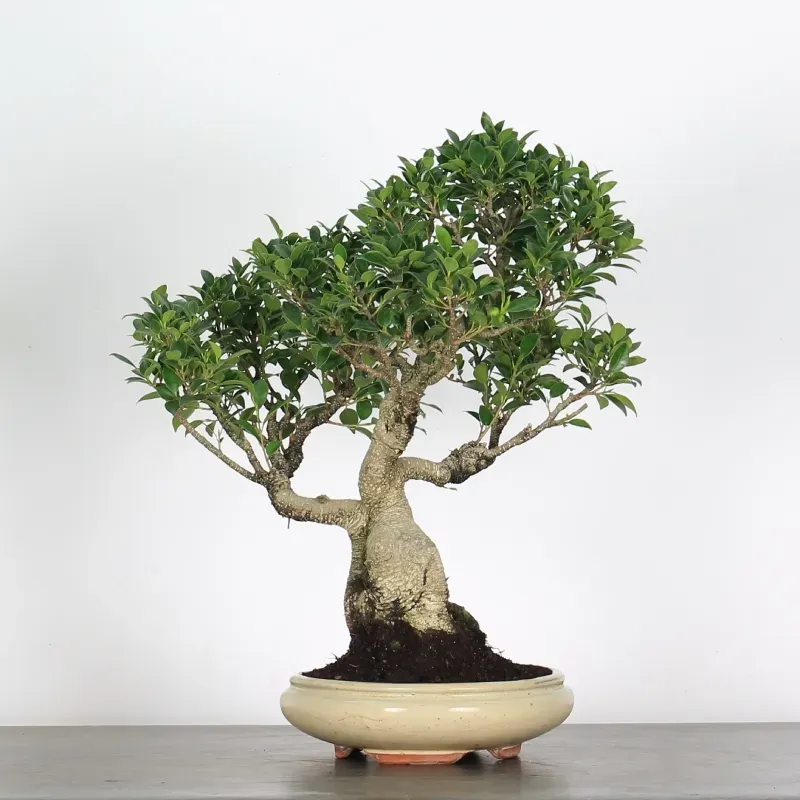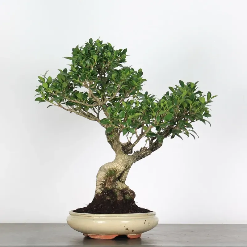 A mature 25-year-old Ficus Nitida bonsai, ideal for indoor growing with plenty of light and outdoor placement during warm months.