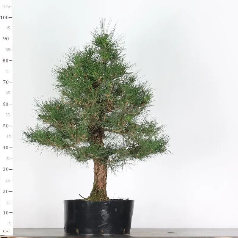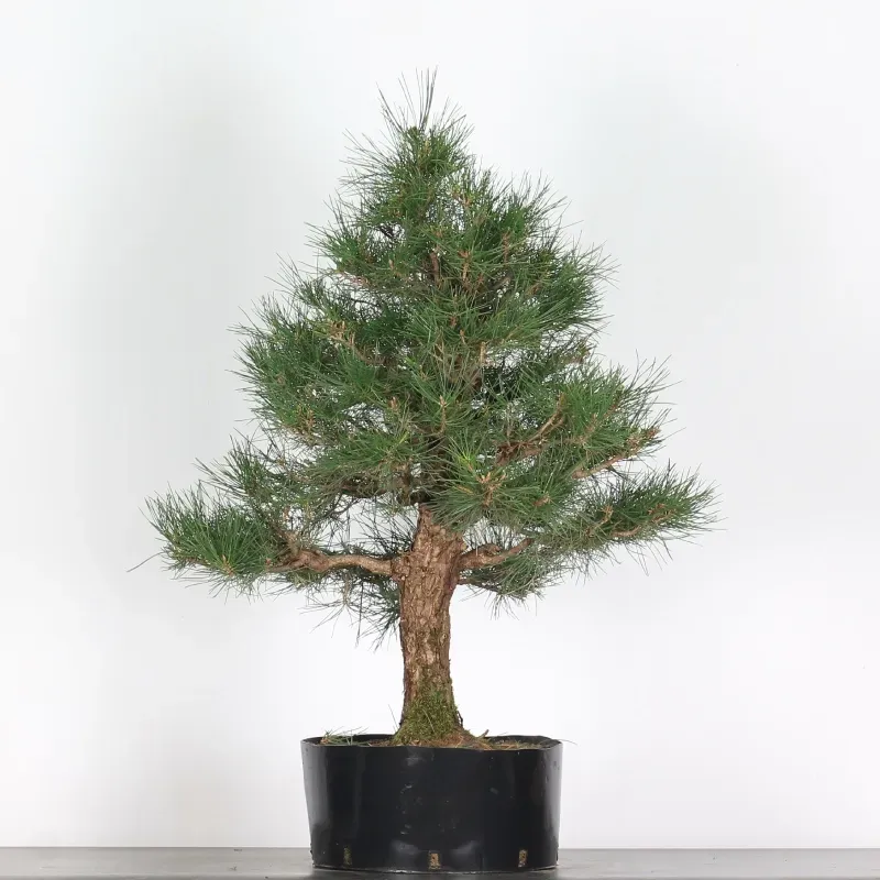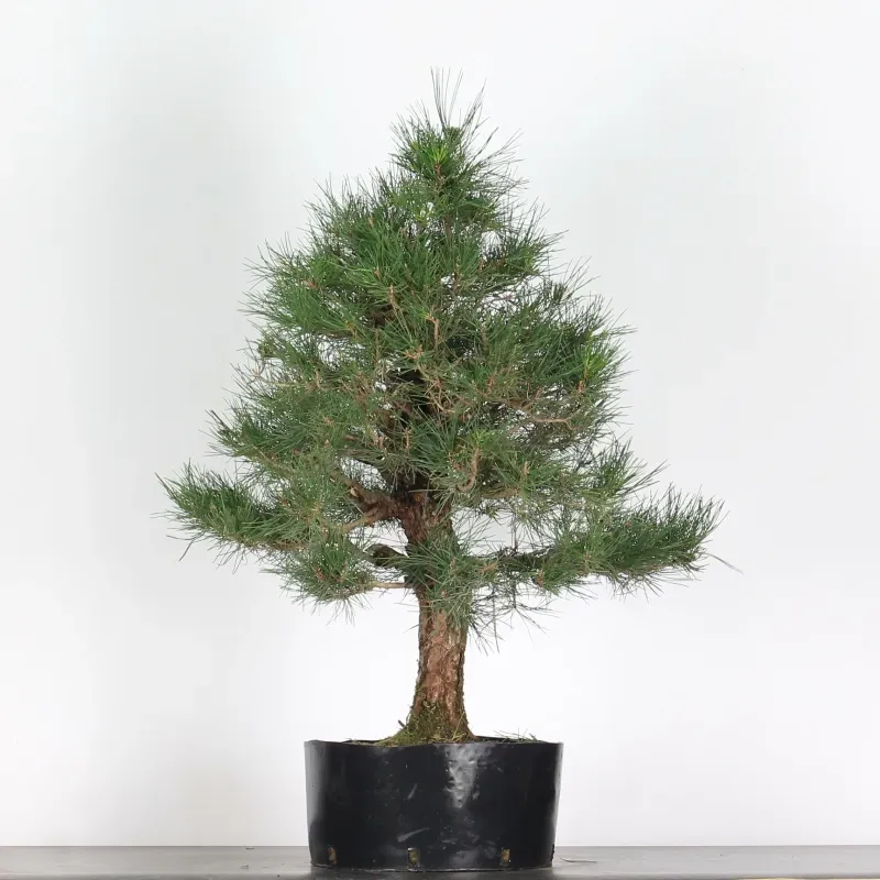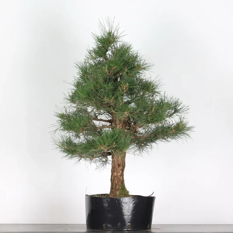 The Japanese Black Pine Bonsai is a quintessential bonsai symbol of strength and virility. Upright, powerful, and magnificent, it sits firmly in its pot and rises gracefully toward the sky. Its dark, cracked bark provides a striking contrast with the fresh light-green needles, giving the tree a healthy and dynamic appearance.