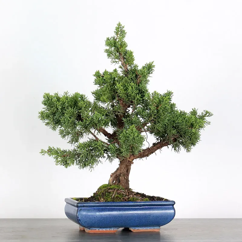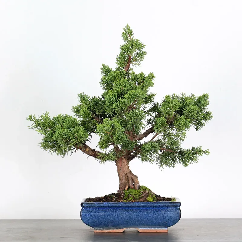 This Juniperus bonsai from our own nursery production is a hardy, evergreen variety highly valued in the bonsai world for its strength and styling possibilities. Its flexible wood and persistent foliage make it perfect for creating deadwood features, jin, and shari, allowing enthusiasts to craft dramatic and expressive forms.