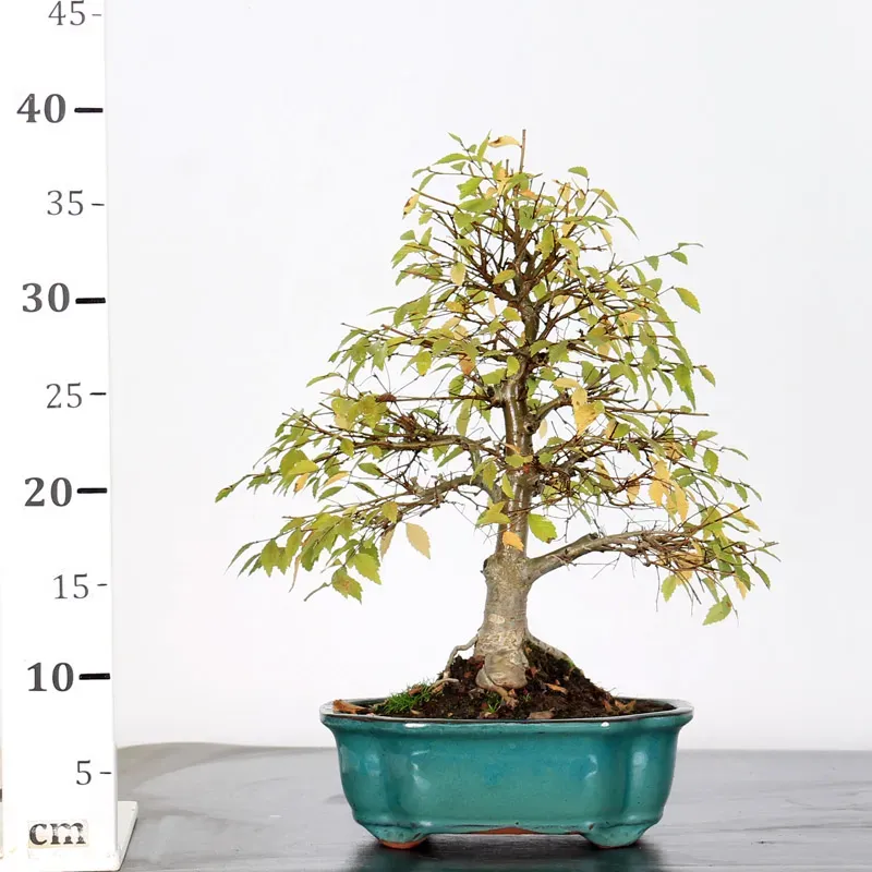 Its fine, serrated leaves grow densely with regular pruning, giving the tree a balanced, elegant silhouette. As it matures, the bark becomes rough and textured, adding natural character. In autumn, its light green foliage shifts to golden yellow, creating seasonal beauty.