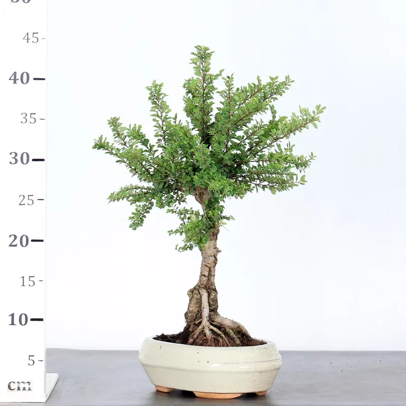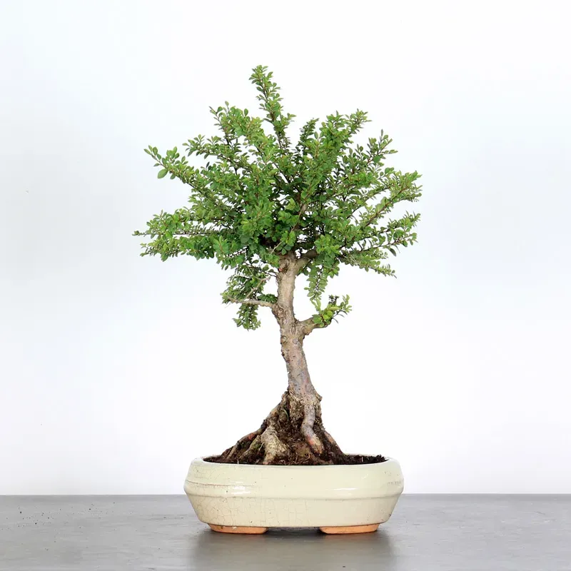 This variety features dense, finely serrated, small leaves, allowing for a beautifully compact and elegant bonsai silhouette. Known in Japan as “Nire” (meaning elm), it is appreciated by both beginners and collectors for its robustness, refinement, and aesthetic potential.